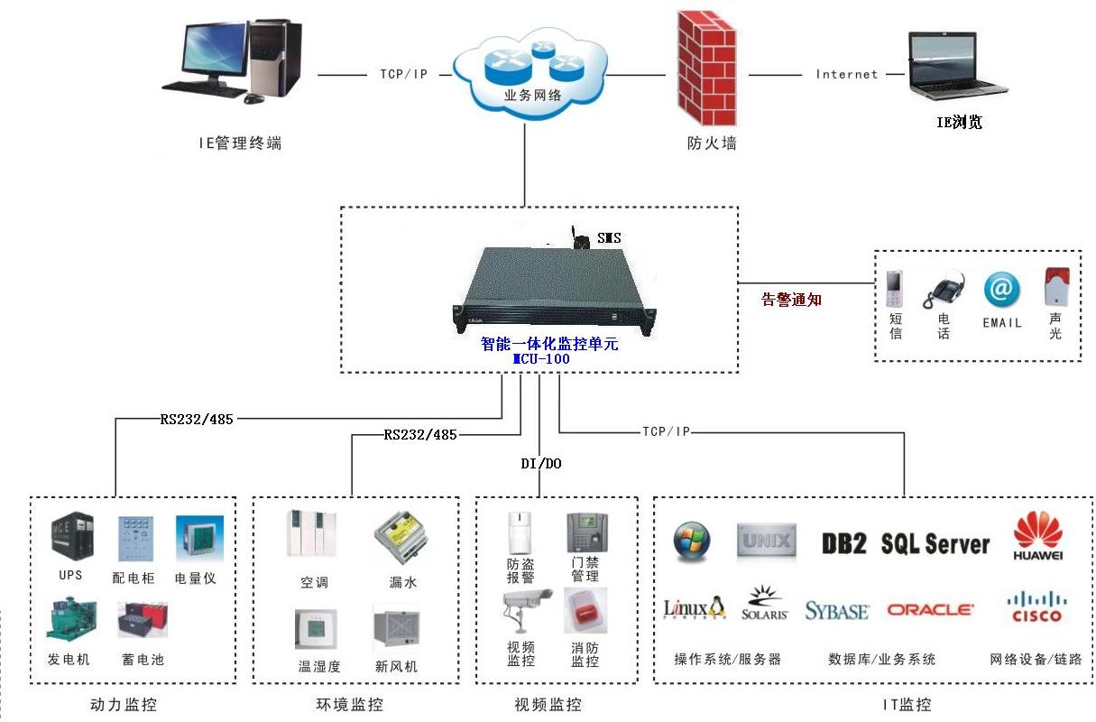 环境监控系统是一个综合利用计算机网络技术、数据库技术、通信技术、自动控制技术、新型传感技术等构成的计算机网络。该系统通过智能接口,将各个监控模块集成在一个统一的平台上,通过ACTIVEX、DCOM、ODBC、TCP/IP等先进的软件技术,达到所有子系统无缝集成、数据共享、数据一体化管理的应用目的。