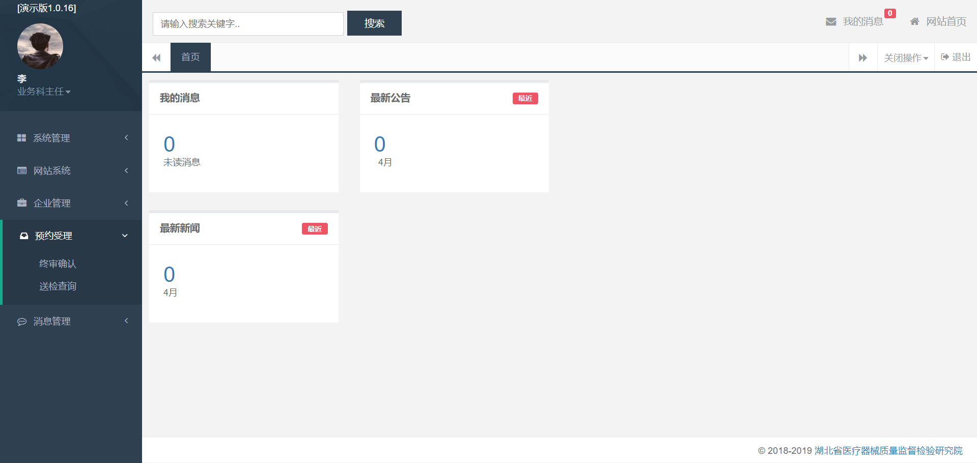 实验室综合管理平台是我公司为“湖北省医疗器械质量监督检验研究院”开发的一款实验室的全局智能化管理平台。包括网站管理、在线预约、在线受理、在线报告生成、人员管理、考勤管理、出入库管理、库存管理、数据统计、大数据分析、动力及环境监控、监控报警、安全管理、移动办公等功能。应质检院要求,我们采用了安全规格更高的Linux系统应用开发环境,所有程序均在Linux下运行,更加安全稳定,已通过"中标麒麟高级服务器操作系统软件"认证。使用了负载均衡、多端备份等技术,保障系统的无故障运行。平台级架构,功能模块配置化管理,可方便拓展新的模块,支持后续功能集成。