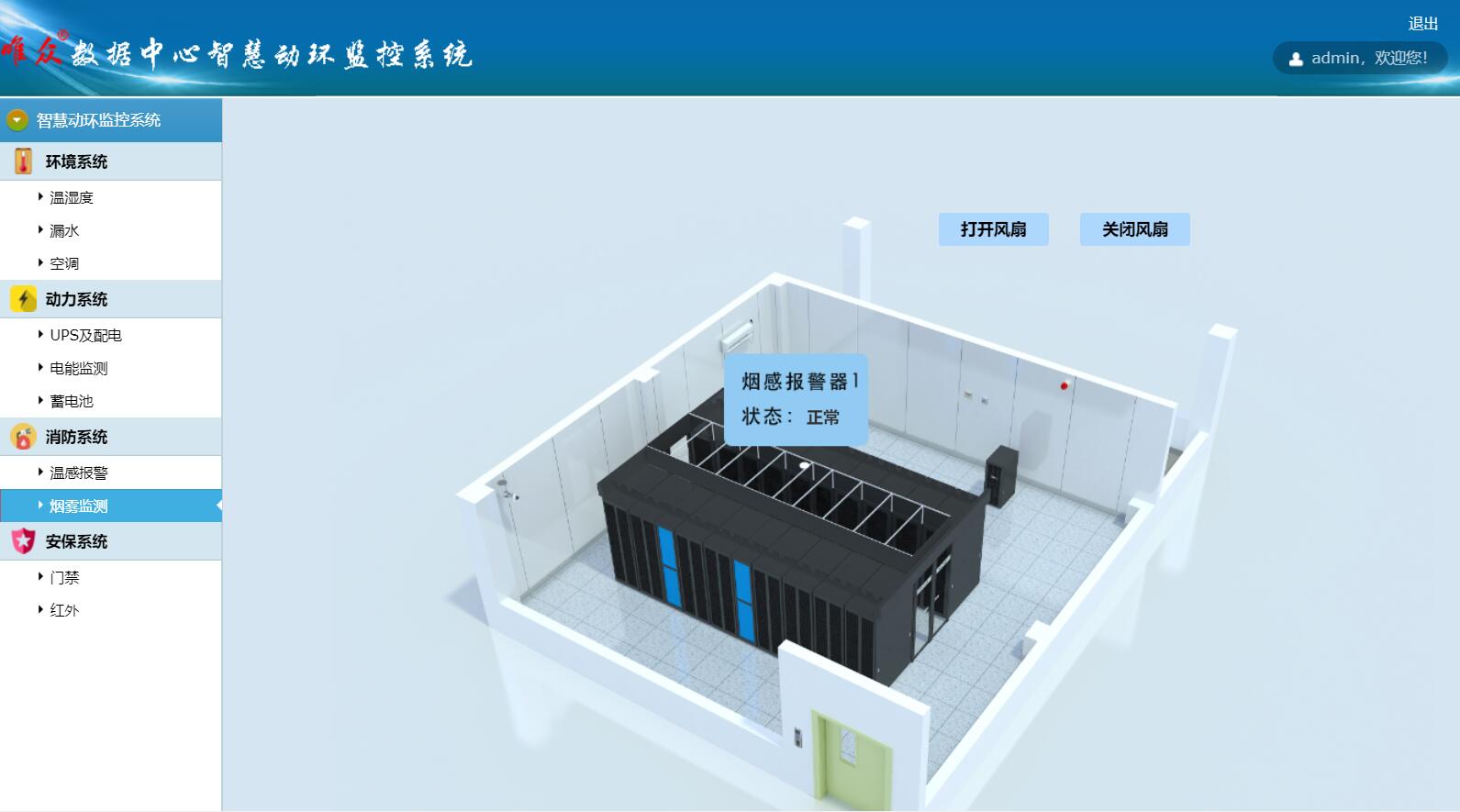 "数据中心智慧动环监控系统"我公司为客户数据中心研发的环境监控系统,包括温湿度监控、漏水监控、空调监控(可远程控制空调开关)、UPS及配电监控、电能监测、蓄电池监控、温感报警、烟雾监测、门禁控制、红外监控等功能。